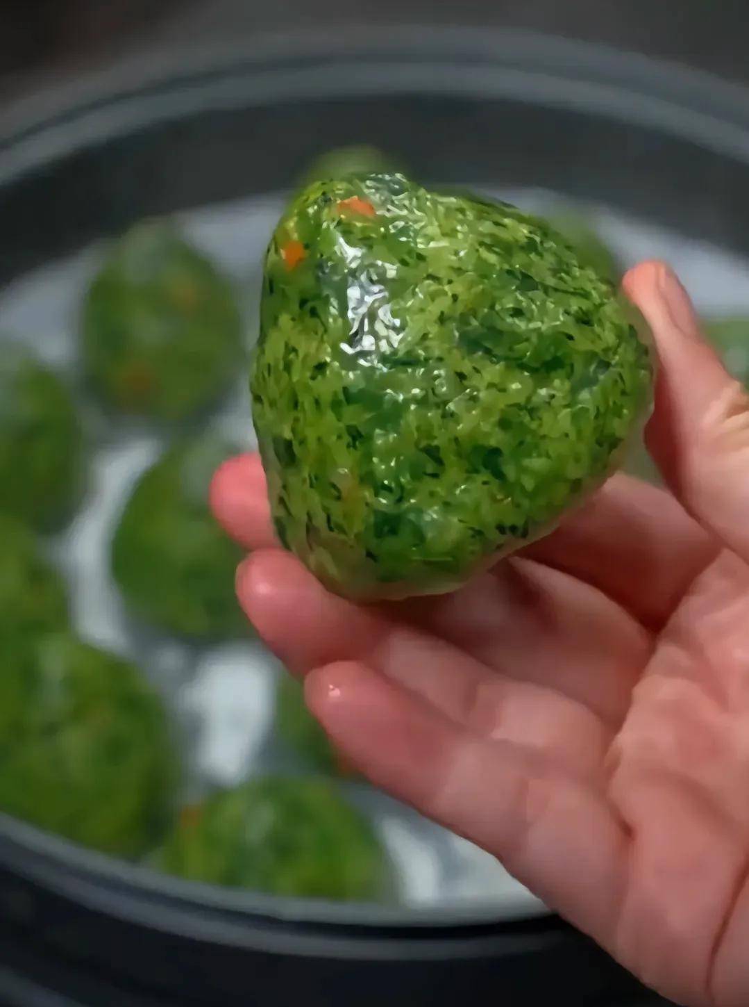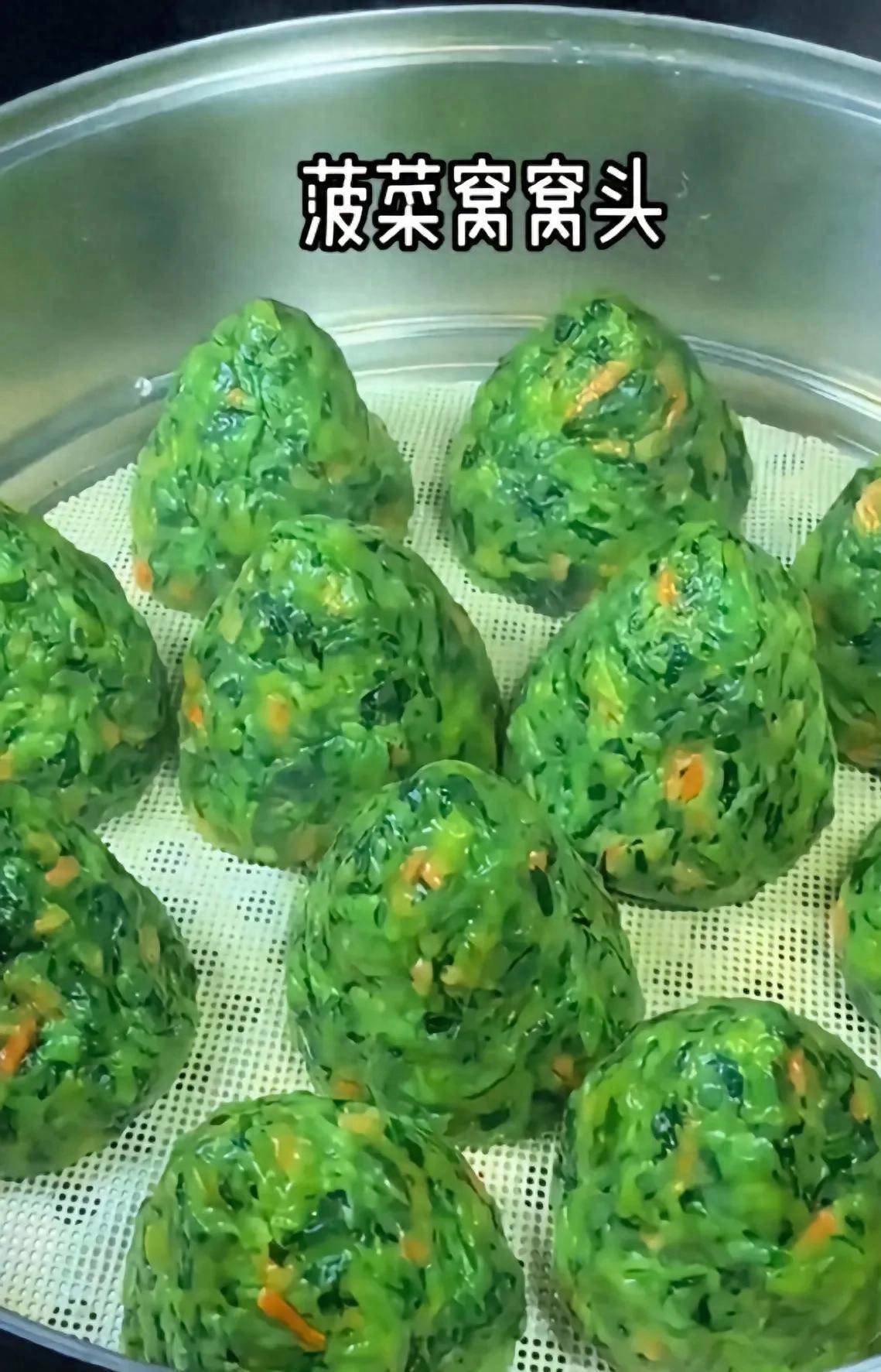 简单吧?就把菠菜焯水切碎,拌上玉米面捏成团子蒸熟。软糯Q弹的,一口下去全是植物清香。