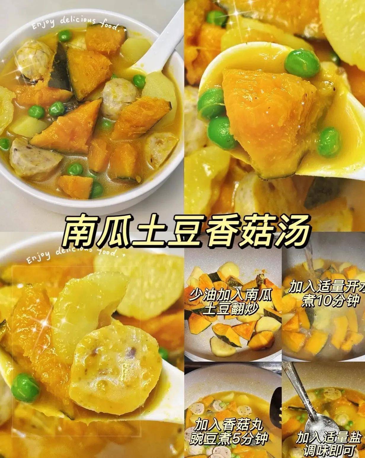 推荐土豆南瓜汤,简单快手:土豆切块、南瓜去皮蒸软,加点清水打成糊,撒点盐就成。温温热热喝一碗,全身暖和,肠道也瞬间“解冻”。